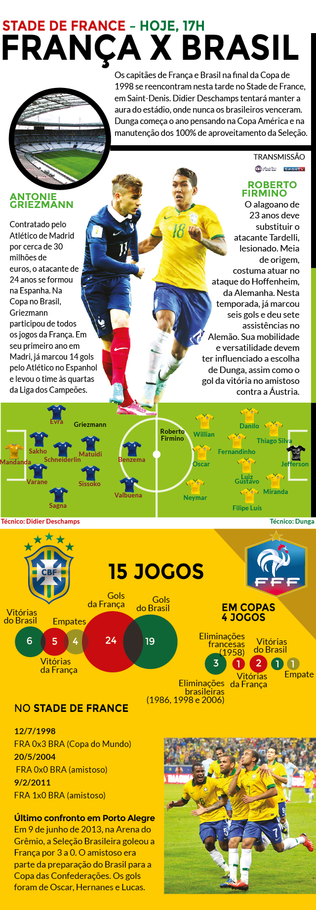Hoje tem França x Brasil, às 17h